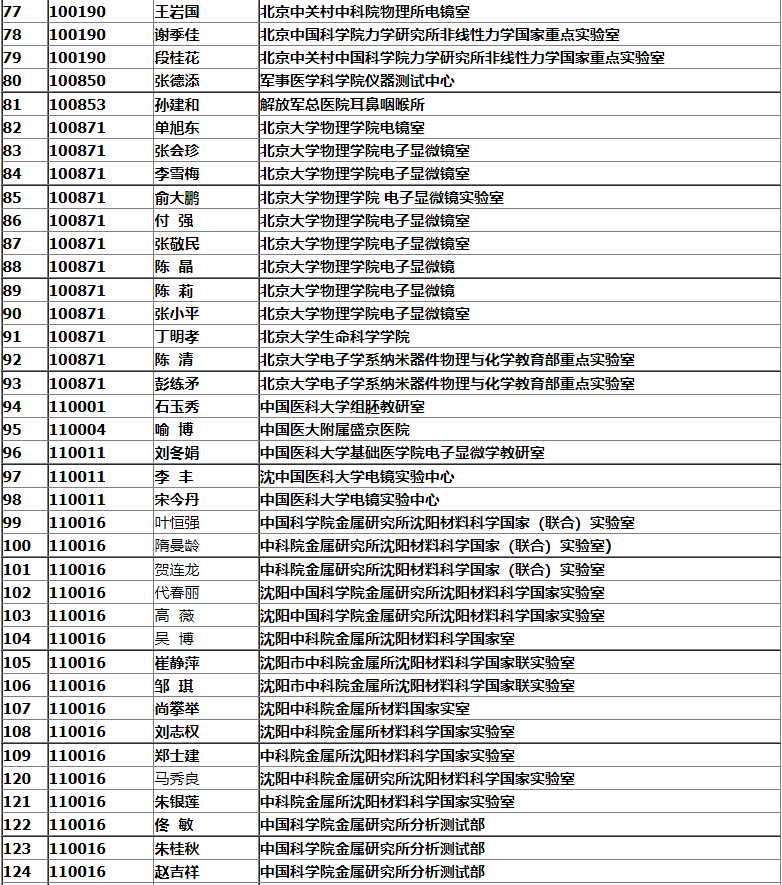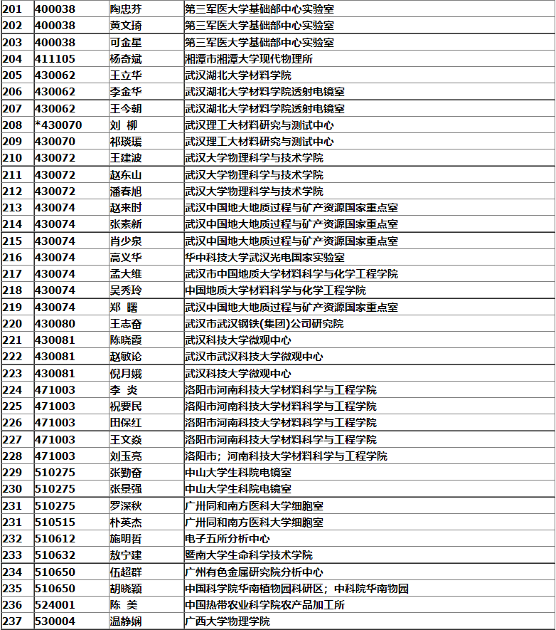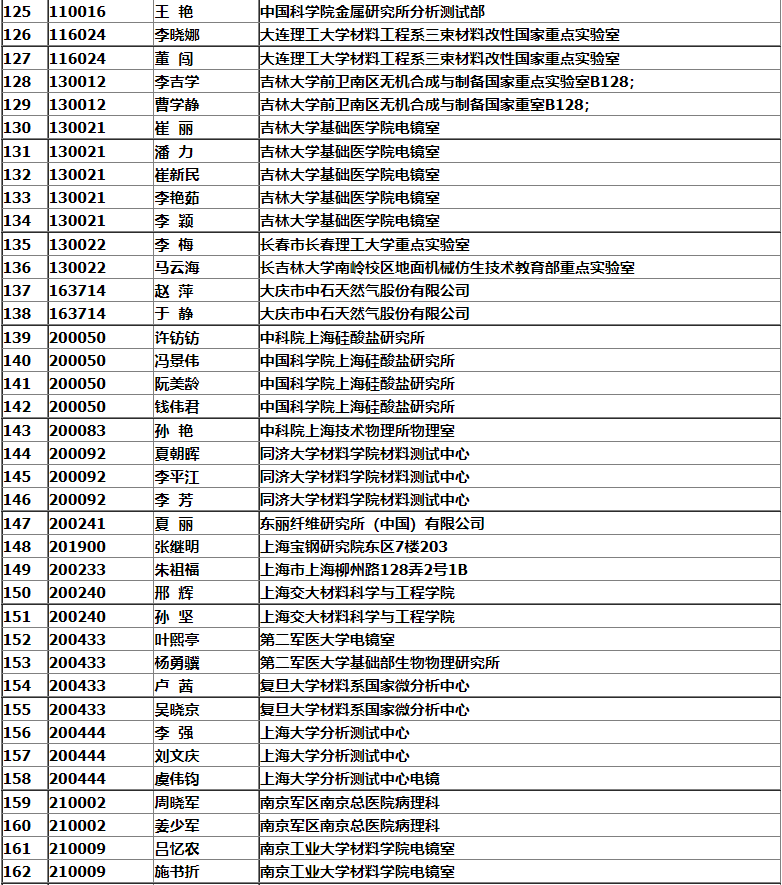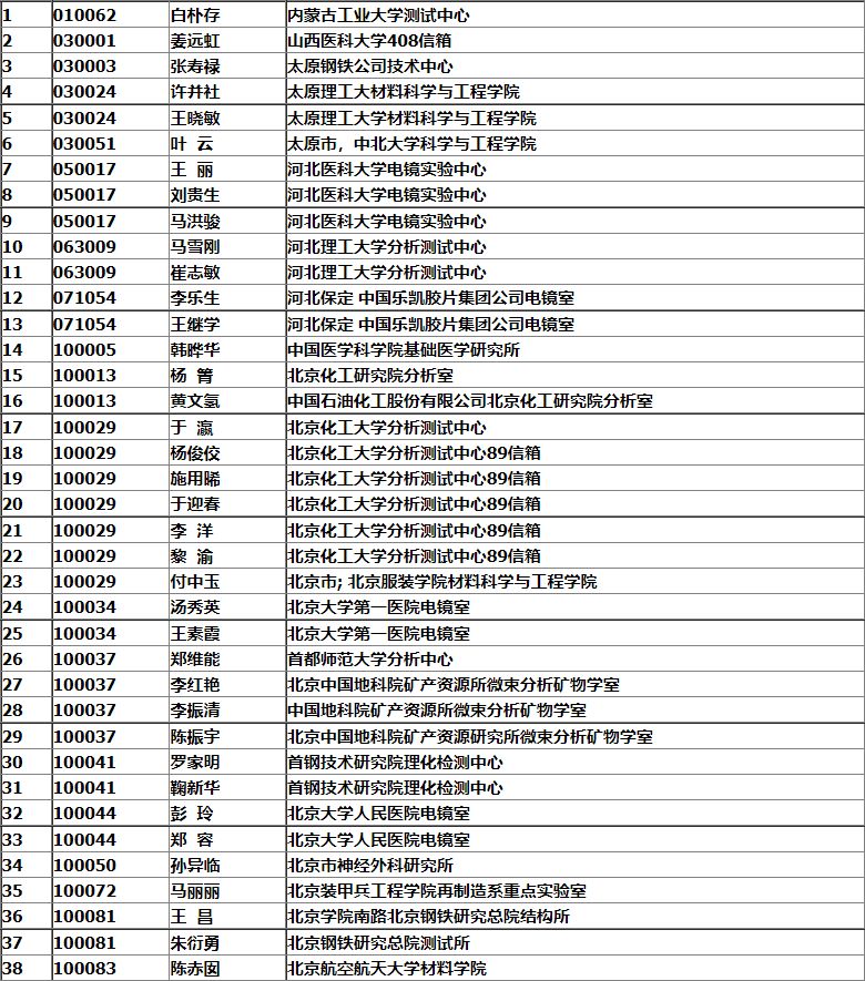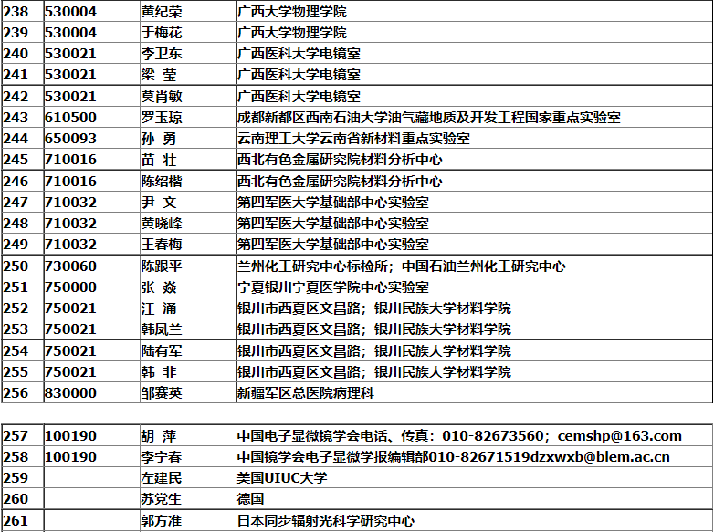 銀川市2008年中國電子顯微鏡學會會議名單