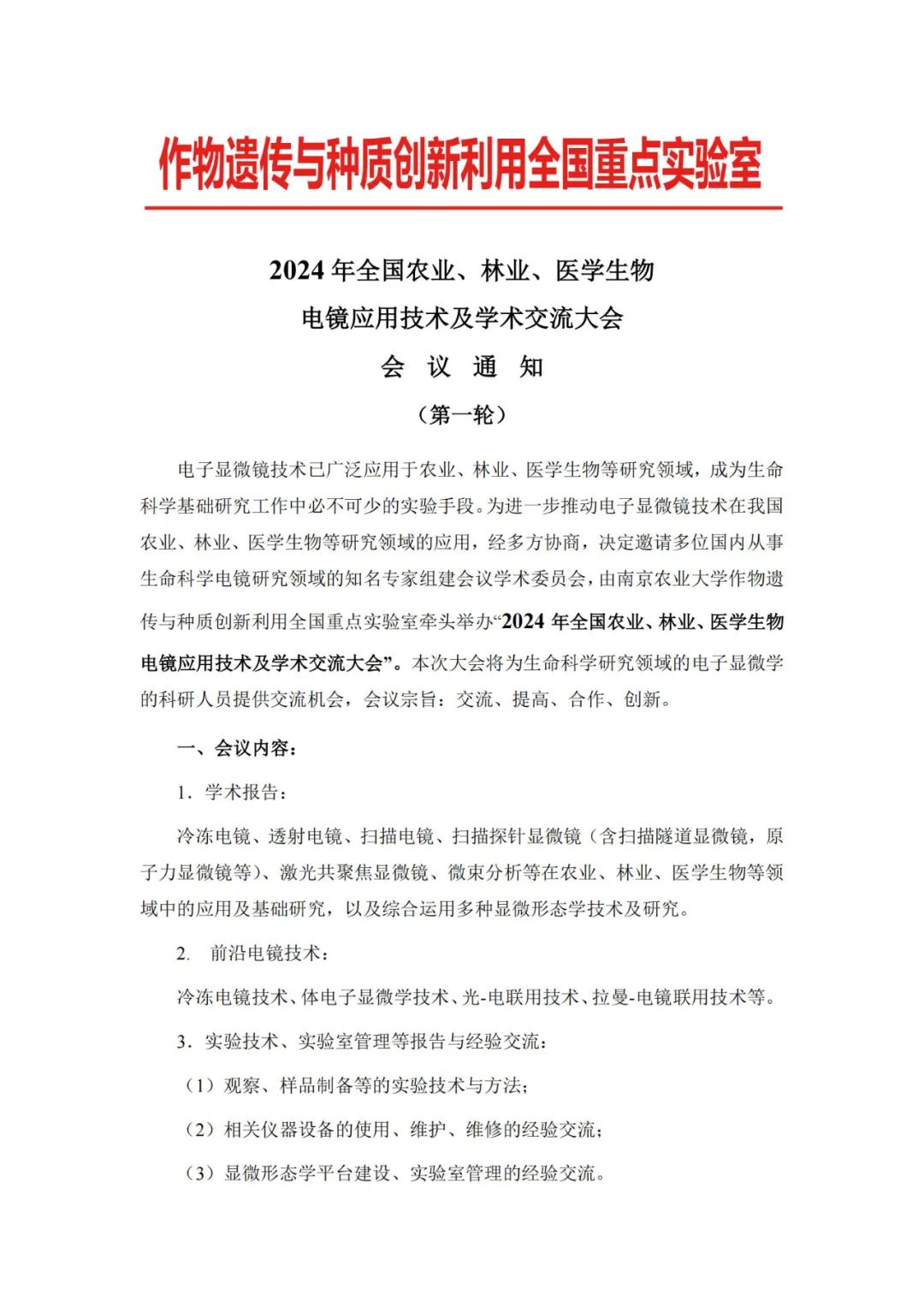 【行業會議】2024年全國農業、林業、醫學生物電鏡應用技術及學術交流大會會議通知(第一輪)